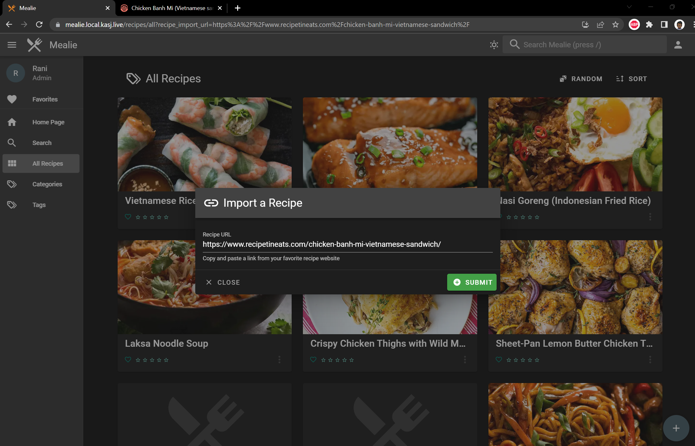 Cool feature #1 - Recipe Import. All I need to do is enter a recipe URL